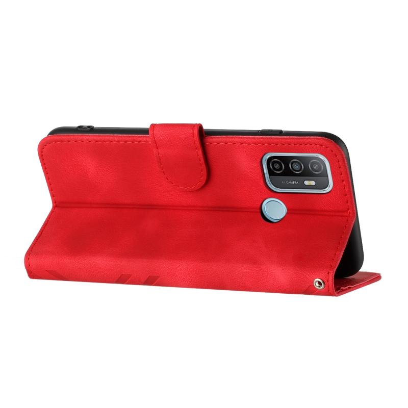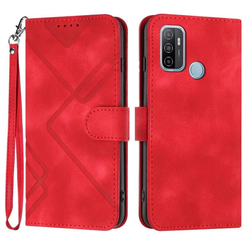For OPPO A53s / A32 / A53 Line Pattern Skin Feel Leather Phone Case(Red)