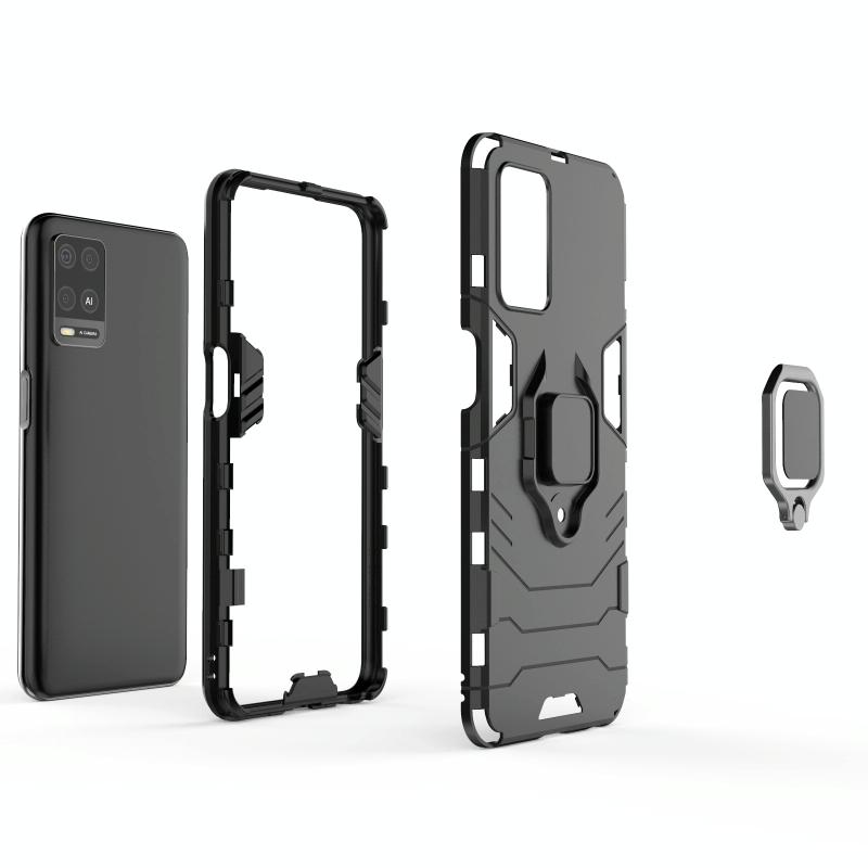 For OPPO A54 4G Shockproof PC + TPU Protective Case with Magnetic Ring Holder(Black)