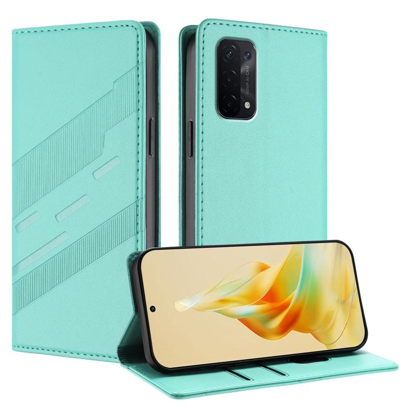 For OPPO A54 5G Embossed Multi-functional Wallet Retro Leather Phone Case(Mint Green)