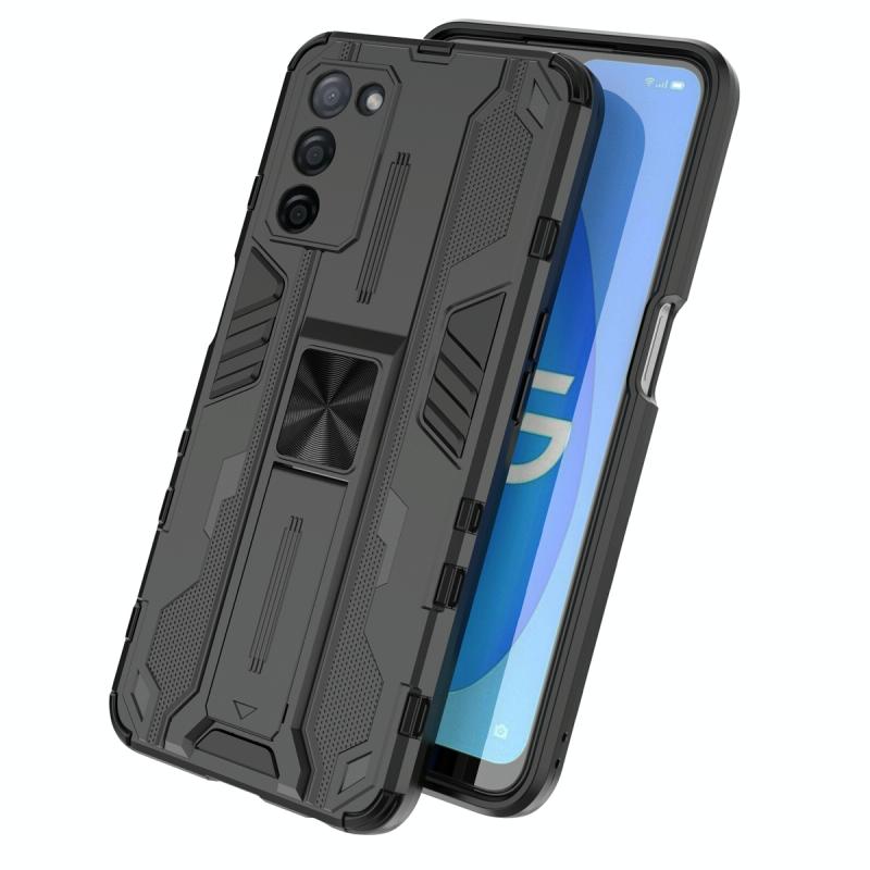 For OPPO A55 5G Supersonic PC + TPU Shock-proof Protective Case with Holder(Black)