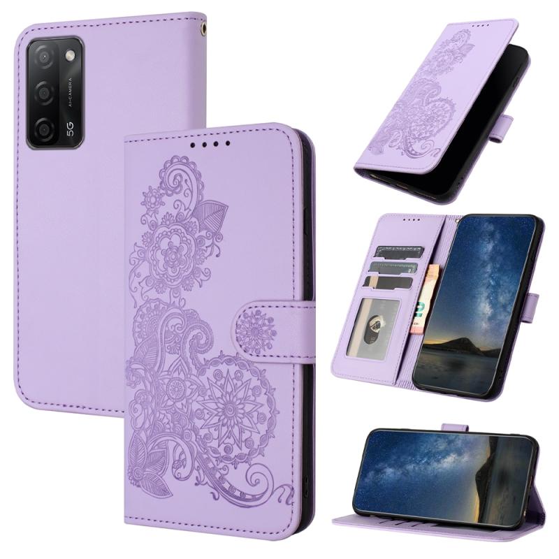 For OPPO A55 Datura Flower Embossed Flip Leather Phone Case(Purple)