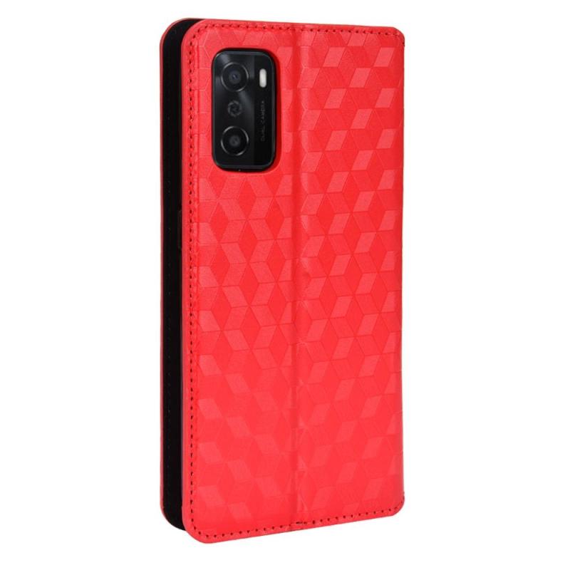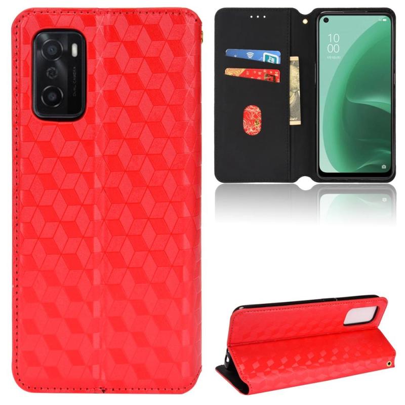 For OPPO A55s 5G Cubic Grid Texture Flip Leather Phone Case(Red)
