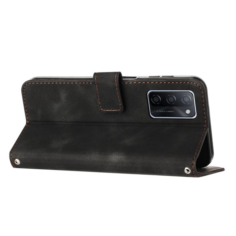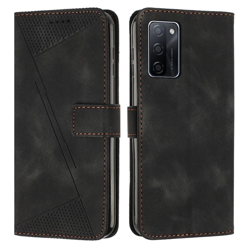 For OPPO A55s JP Version Dream Triangle Leather Phone Case with Lanyard(Black)