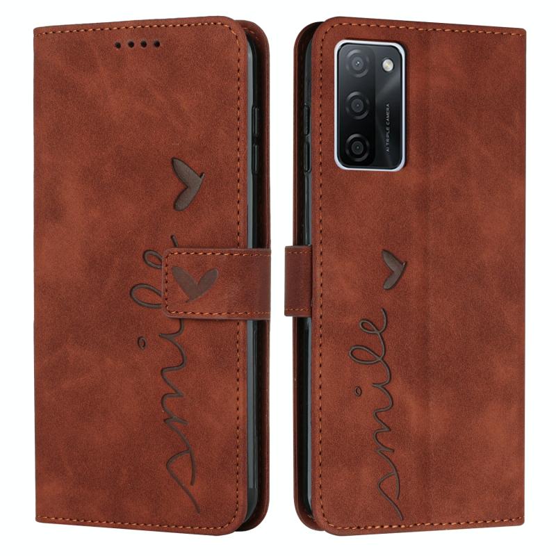 For OPPO A55s Skin Feel Heart Pattern Leather Phone Case(Brown)