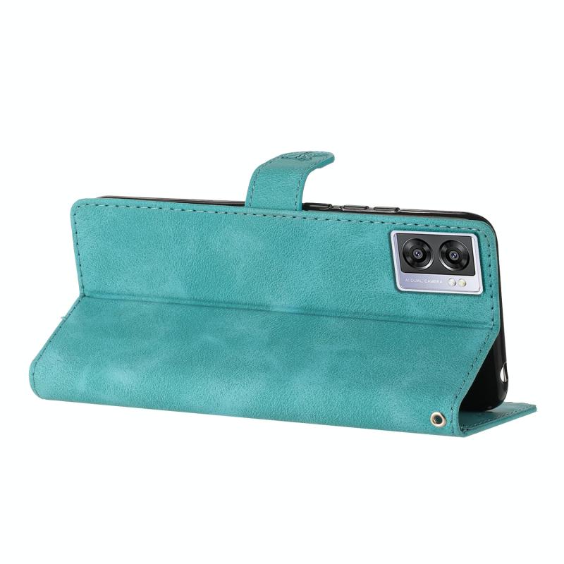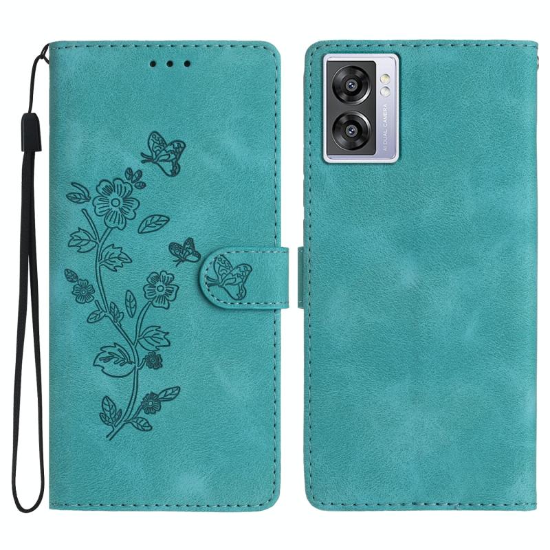 For OPPO A57 2022 / A77 5G Flower Butterfly Embossing Pattern Leather Phone Case(Sky Blue)