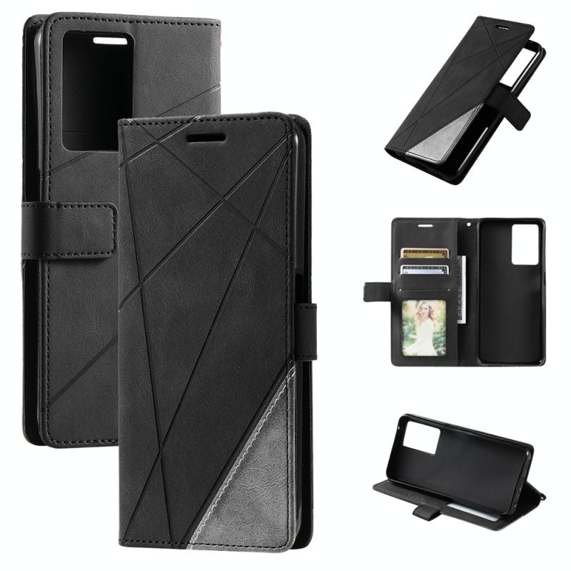 For OPPO A57 2022 Skin Feel Splicing Leather Phone Case(Black)