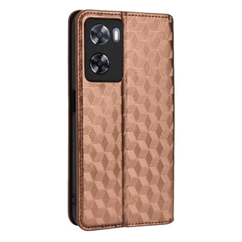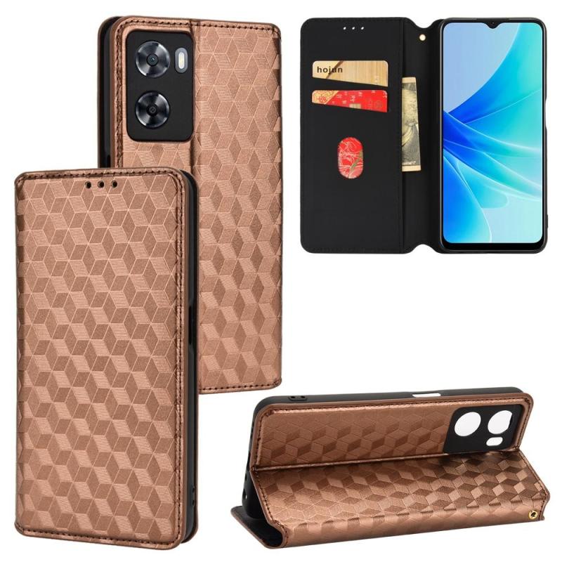 For OPPO A57 4G 2022 / 5G TW Cubic Grid Texture Flip Leather Phone Case(Brown)