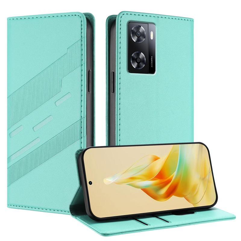 For OPPO A57 4G Embossed Multi-functional Wallet Retro Leather Phone Case(Mint Green)