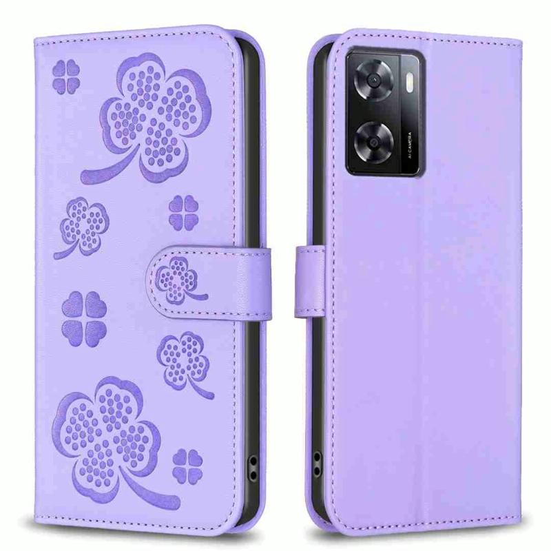 For OPPO A57 4G Four-leaf Embossed Leather Phone Case(Purple)