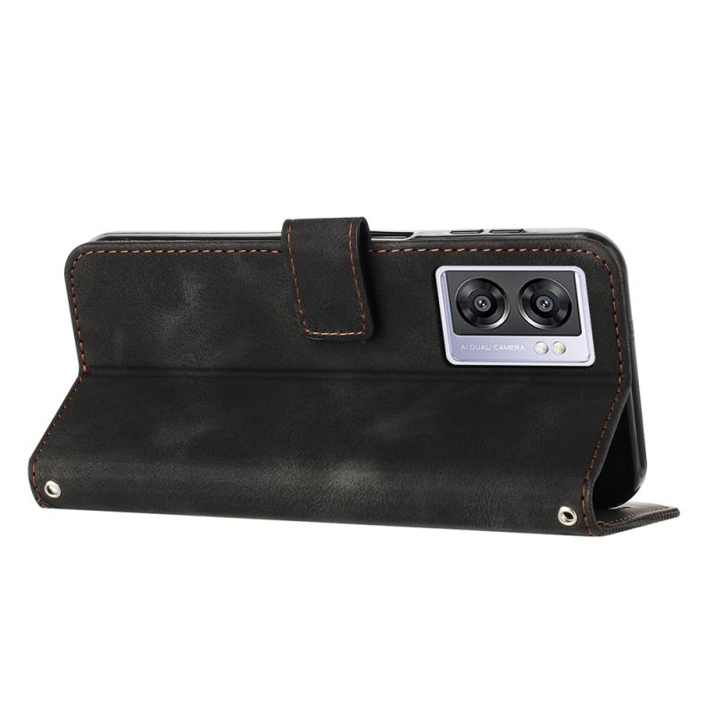 For OPPO A57 5G 2022 Dream Triangle Leather Phone Case with Lanyard(Black)