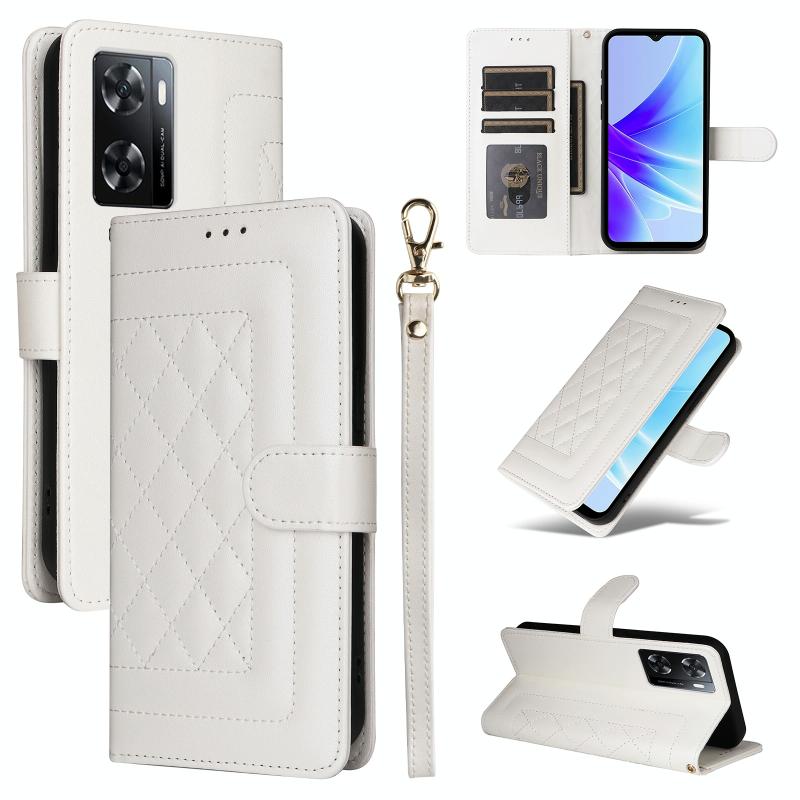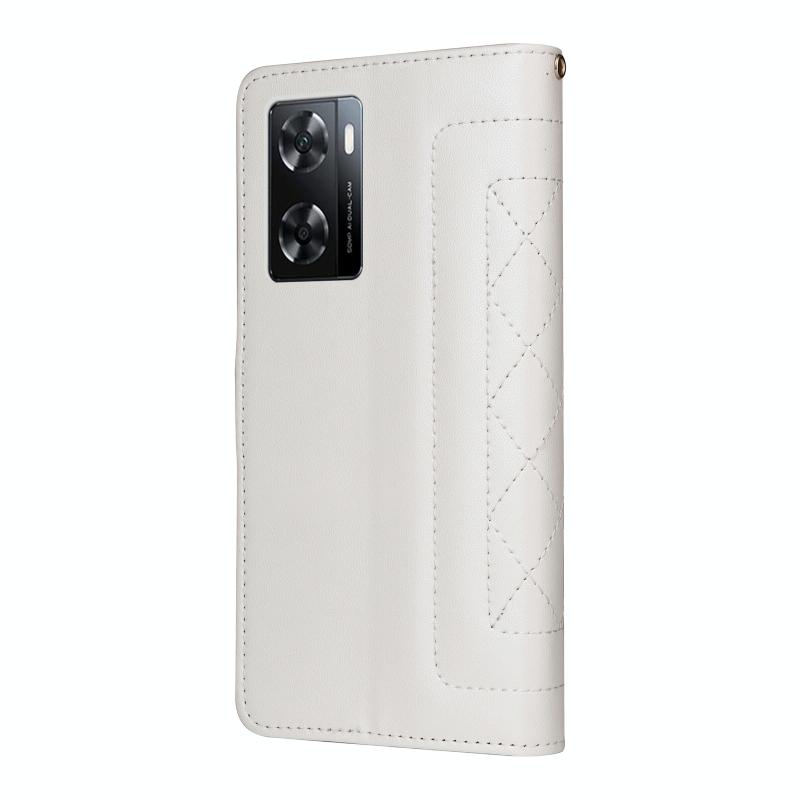 For OPPO A57 / A57s Diamond Lattice Leather Flip Phone Case(White)