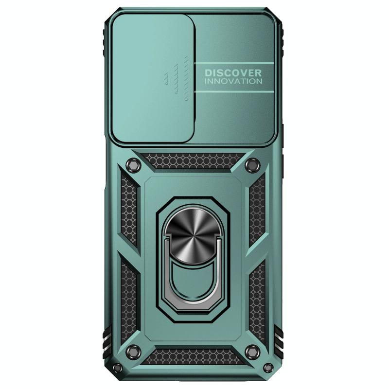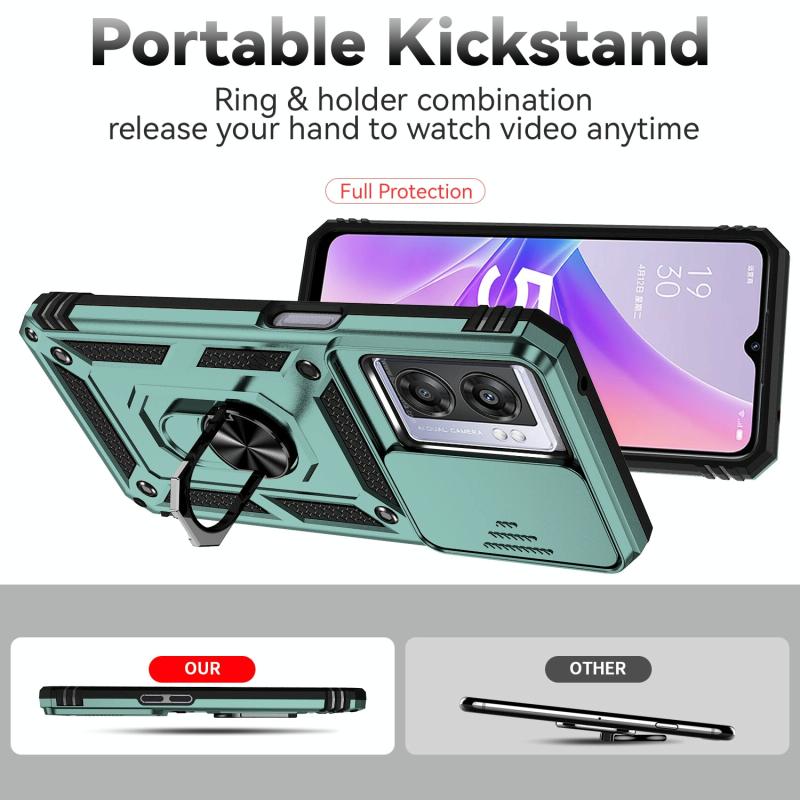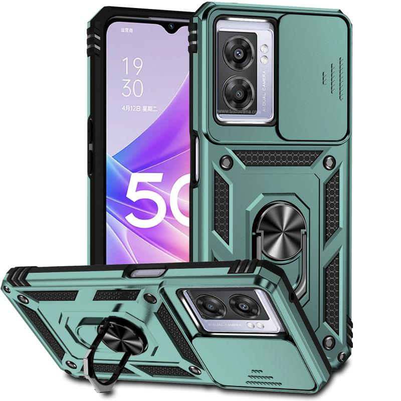 For OPPO A57 Sliding Camshield Holder Phone Case(Dark Green)