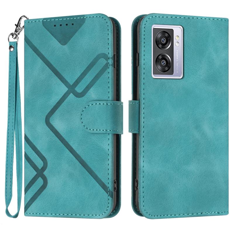 For OPPO A57e 4G Global/A57s 4G Global Line Pattern Skin Feel Leather Phone Case(Light Blue)
