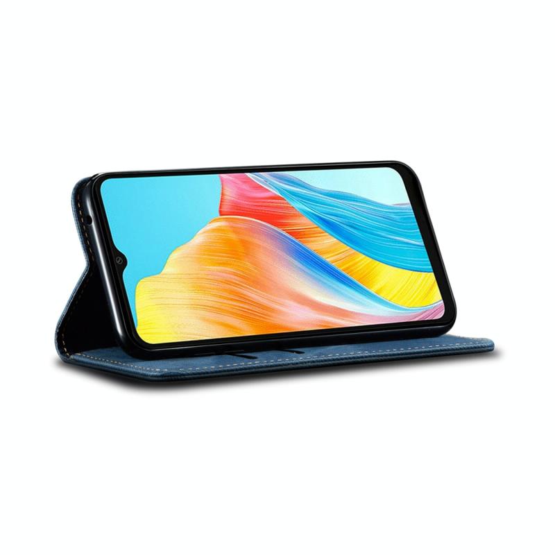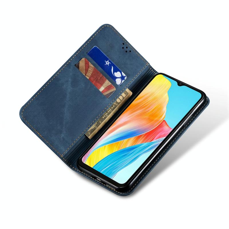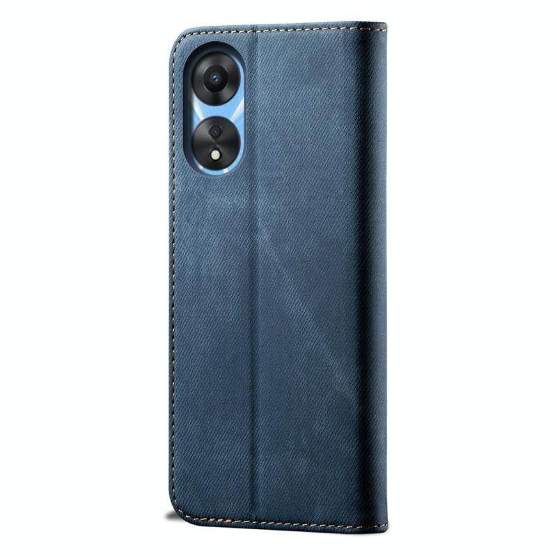 For OPPO A58 4G Denim Texture Casual Style Horizontal Flip Leather Case(Blue)