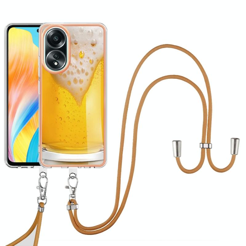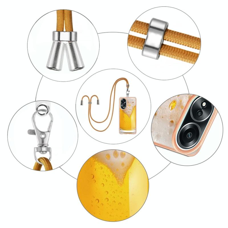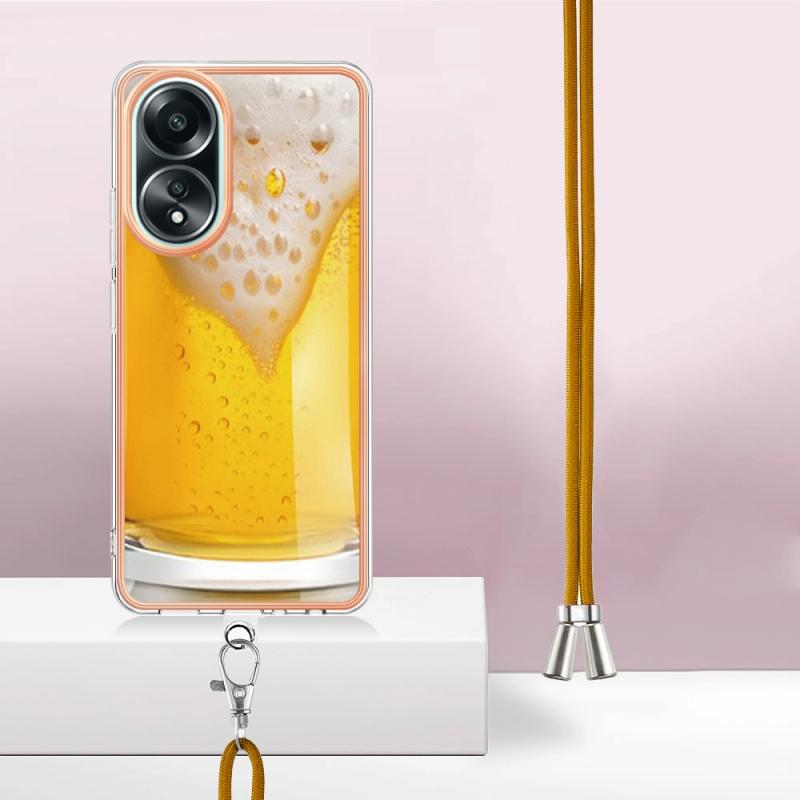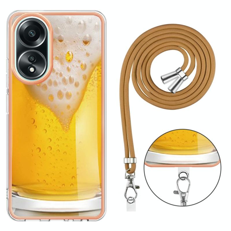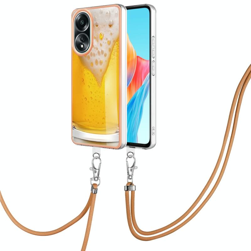 For OPPO A58 4G Electroplating Dual-side IMD Phone Case with Lanyard(Draft Beer)