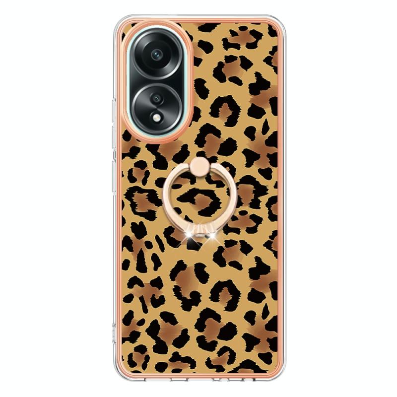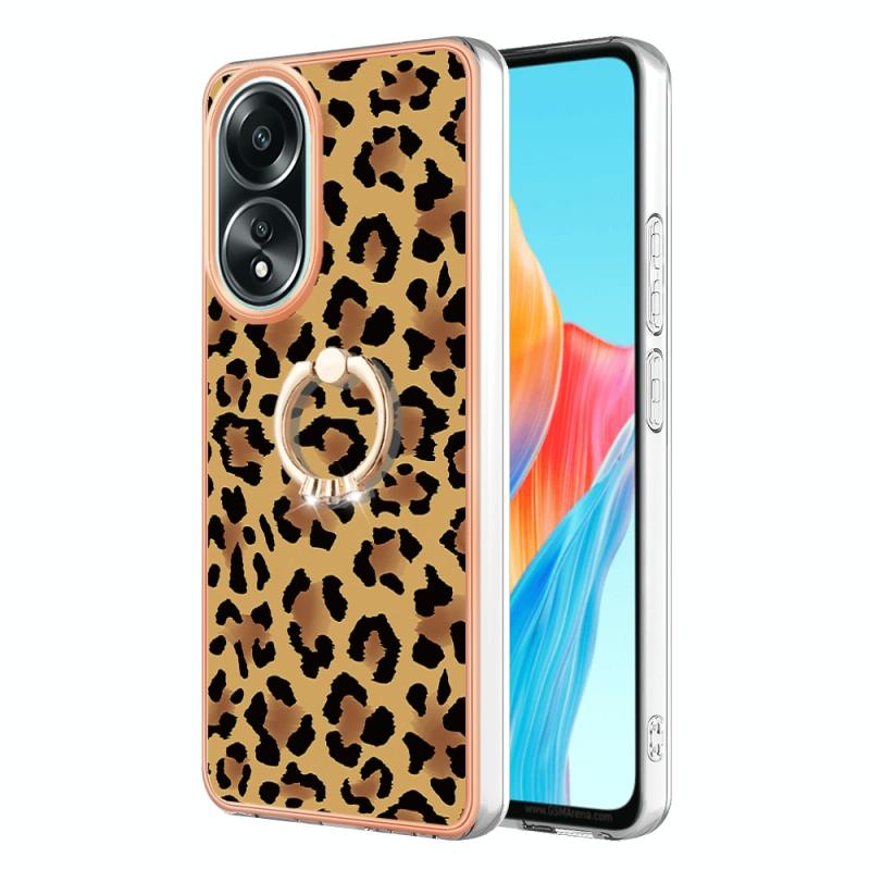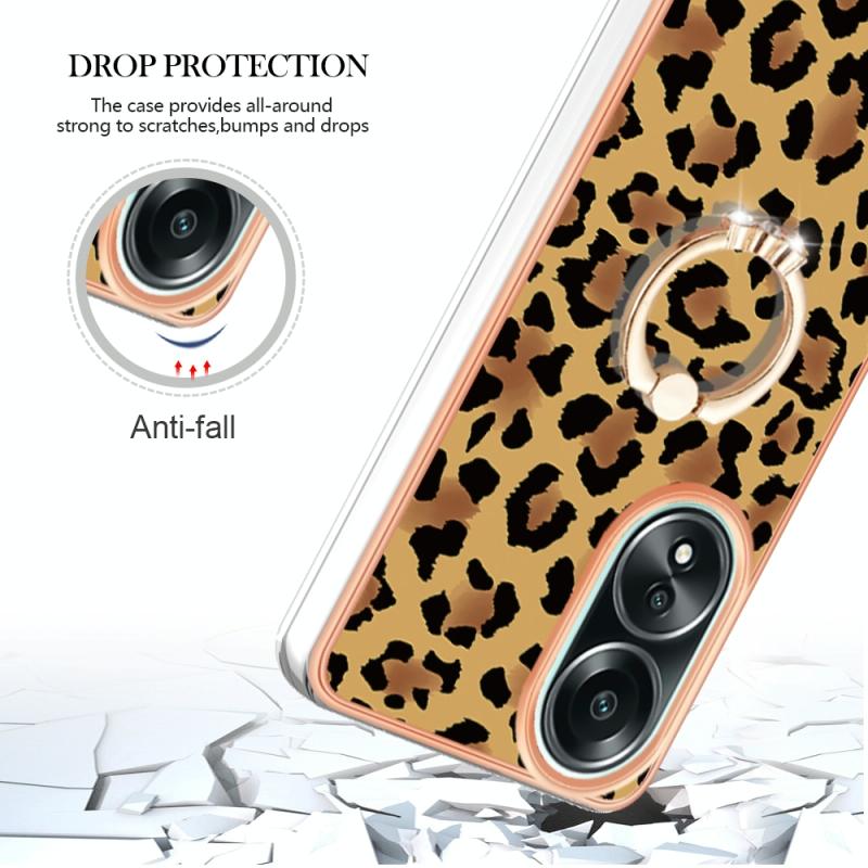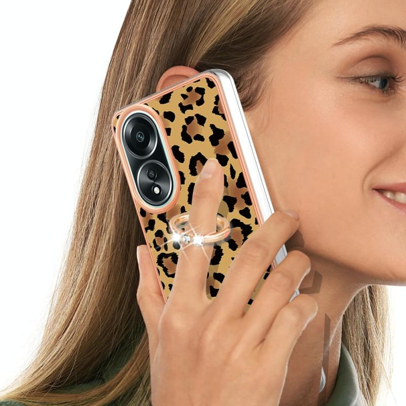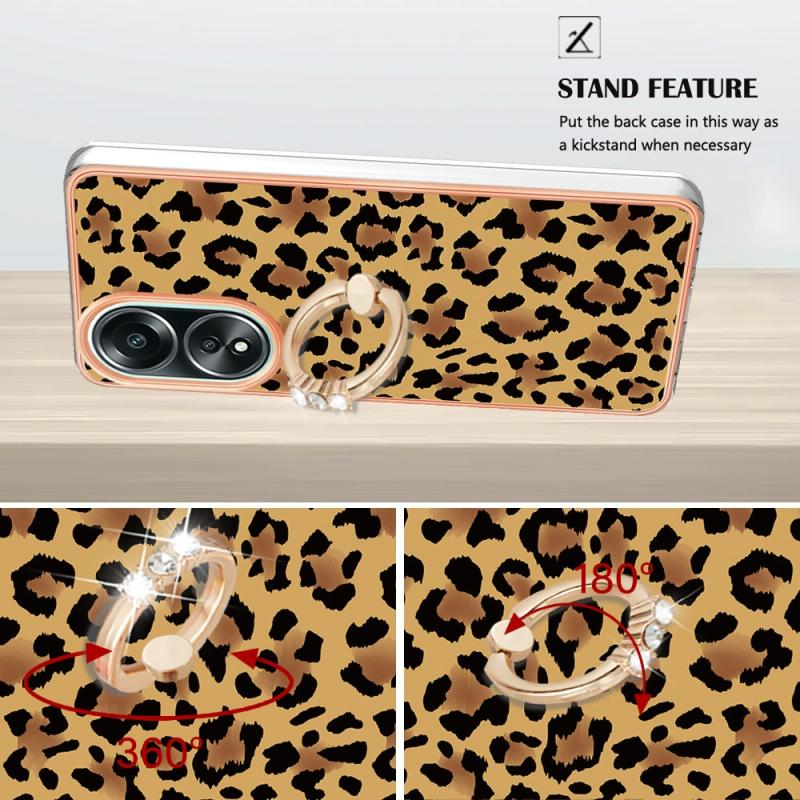 For OPPO A58 4G Electroplating Dual-side IMD Phone Case with Ring Holder(Leopard Print)