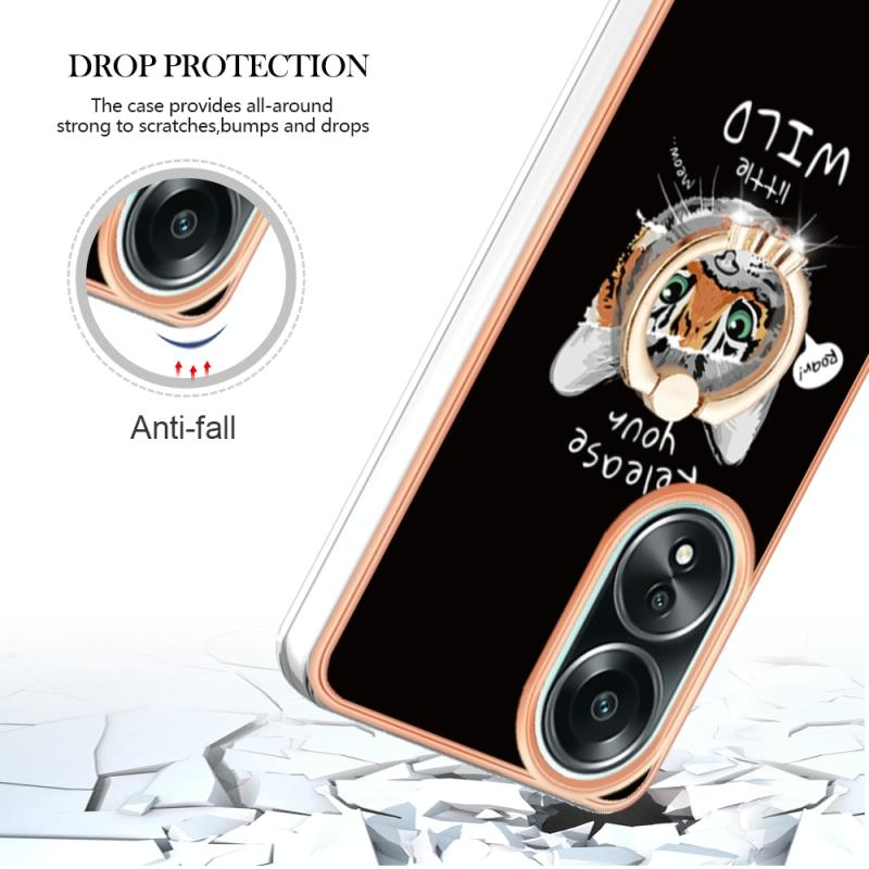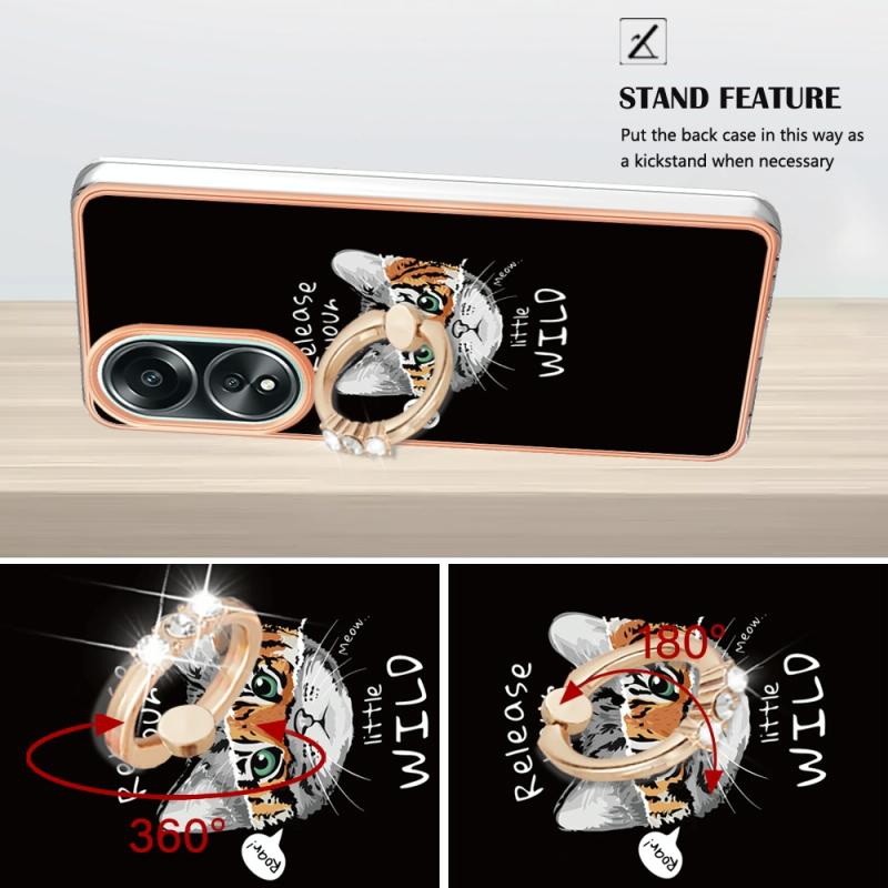 For OPPO A58 4G Electroplating Dual-side IMD Phone Case with Ring Holder(Natural Growth)