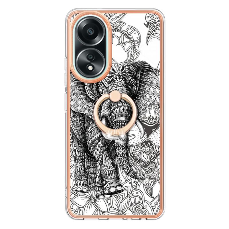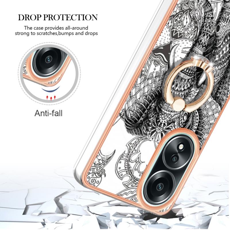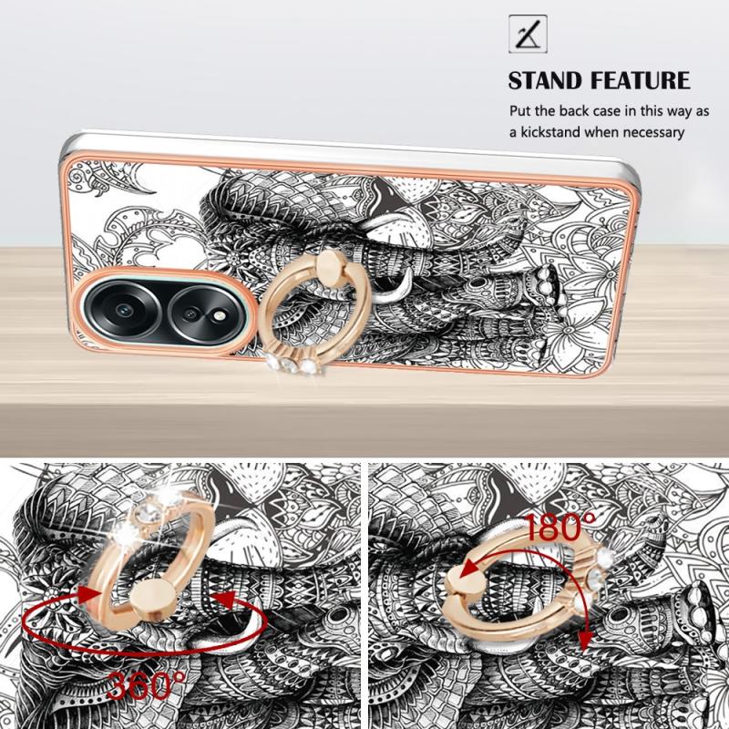 For OPPO A58 4G Electroplating Dual-side IMD Phone Case with Ring Holder(Totem Elephant)