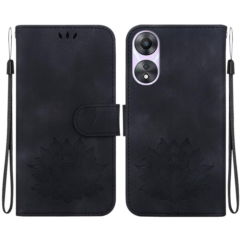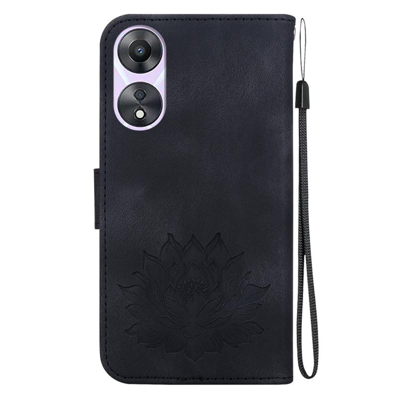 For OPPO A58 4G Lotus Embossed Leather Phone Case(Black)