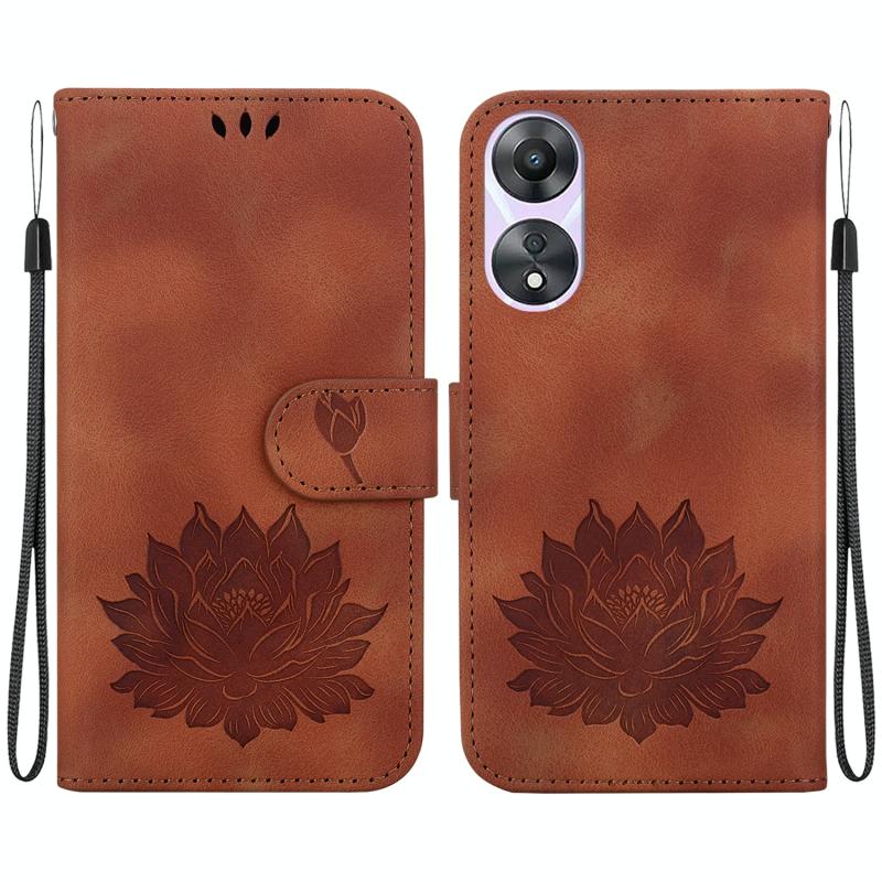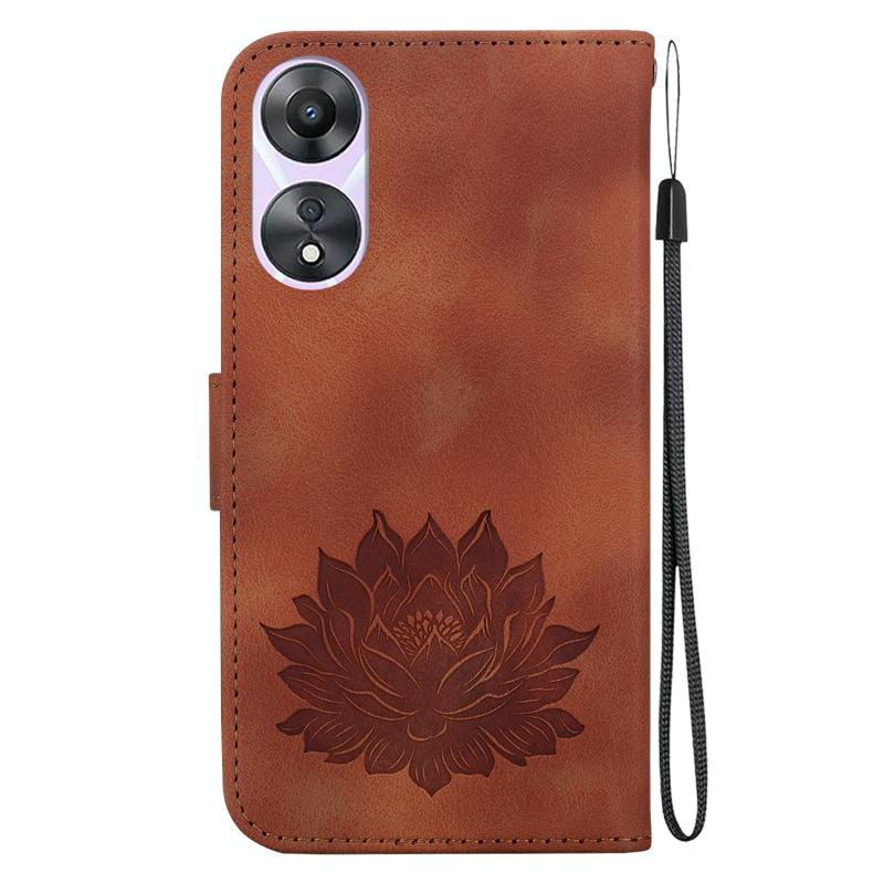 For OPPO A58 4G Lotus Embossed Leather Phone Case(Brown)