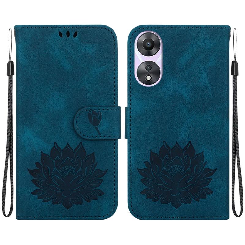 For OPPO A58 4G Lotus Embossed Leather Phone Case(Dark Blue)