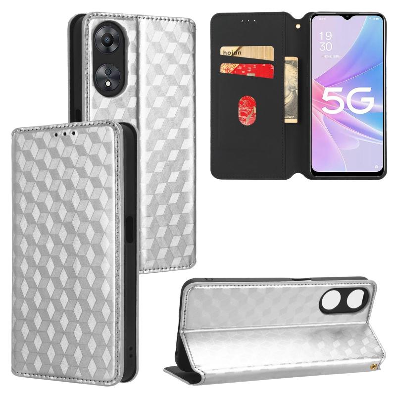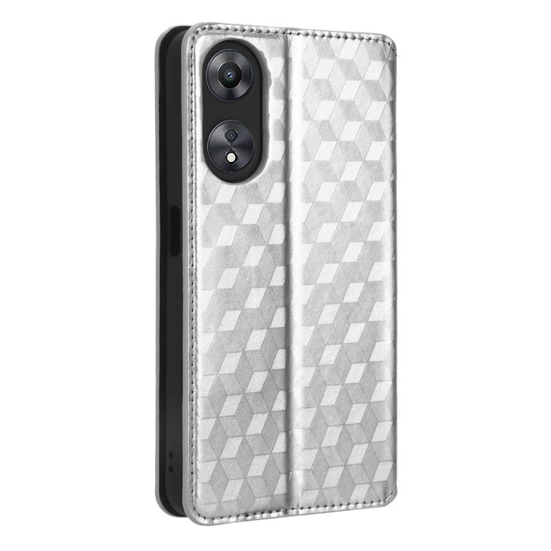 For OPPO A58 5G / A58x / A78 5G Cubic Grid Texture Flip Leather Phone Case(Silver)