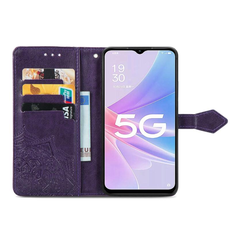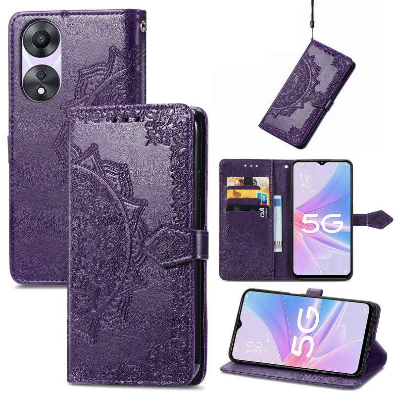 For OPPO A58 5G Mandala Flower Embossed Leather Phone Case(Purple)