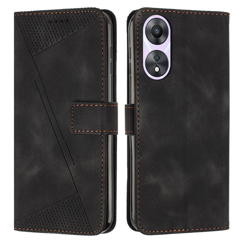 For OPPO A58 / A78 Dream Triangle Leather Phone Case with Long Lanyard(Black)