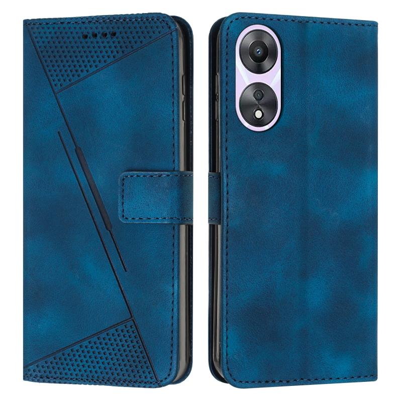 For OPPO A58 / A78 Dream Triangle Leather Phone Case with Long Lanyard(Blue)