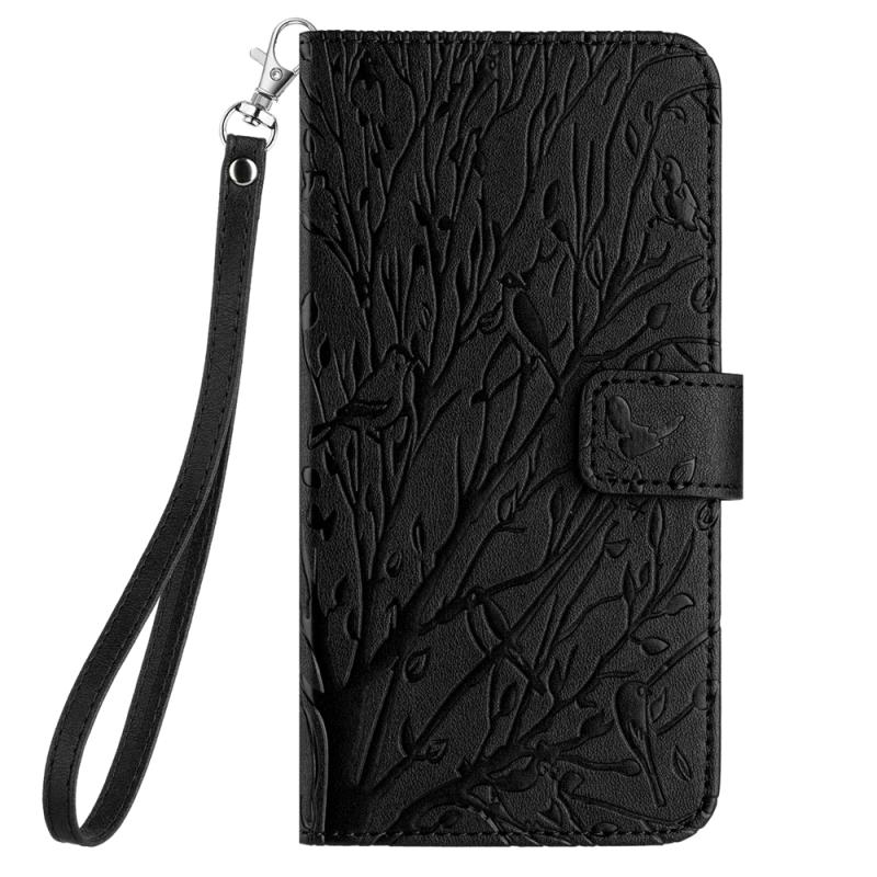 For OPPO A58 / A78 Tree Birds Embossed Pattern Leather Phone Case(Black)