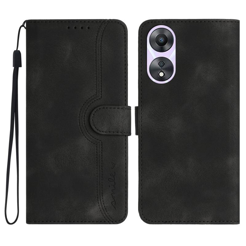 For OPPO A58 Heart Pattern Skin Feel Leather Phone Case(Black)