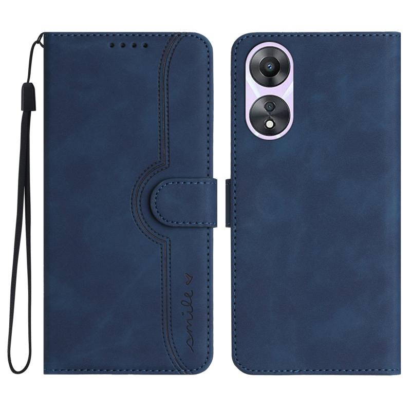 For OPPO A58 Heart Pattern Skin Feel Leather Phone Case(Royal Blue)
