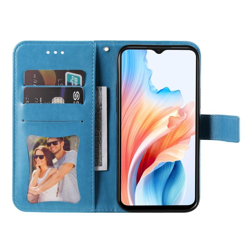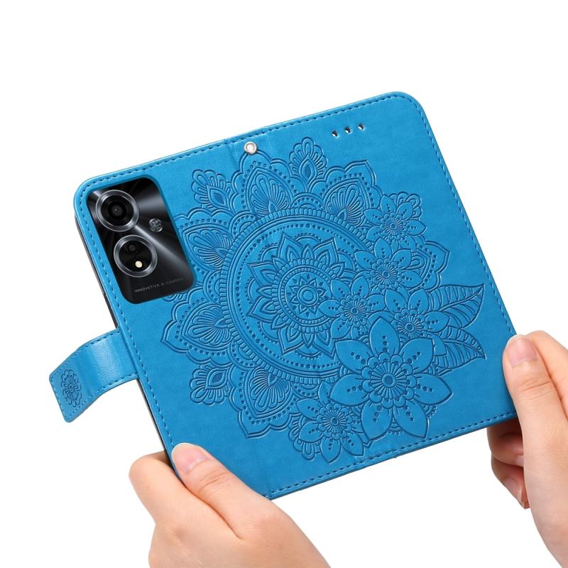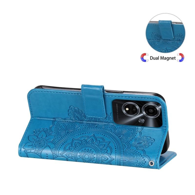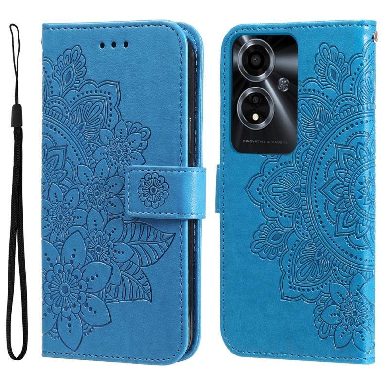 For OPPO A59 5G / A2m Seven-petal Flowers Embossing Leather Phone Case(Blue)