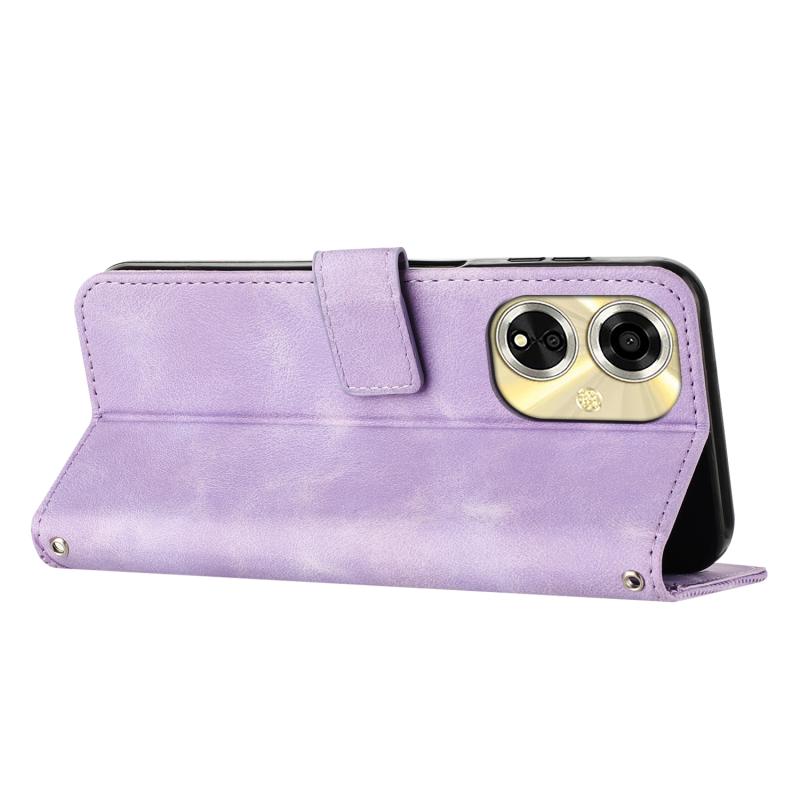 For OPPO A59 5G Dream Triangle Leather Phone Case with Lanyard(Purple)