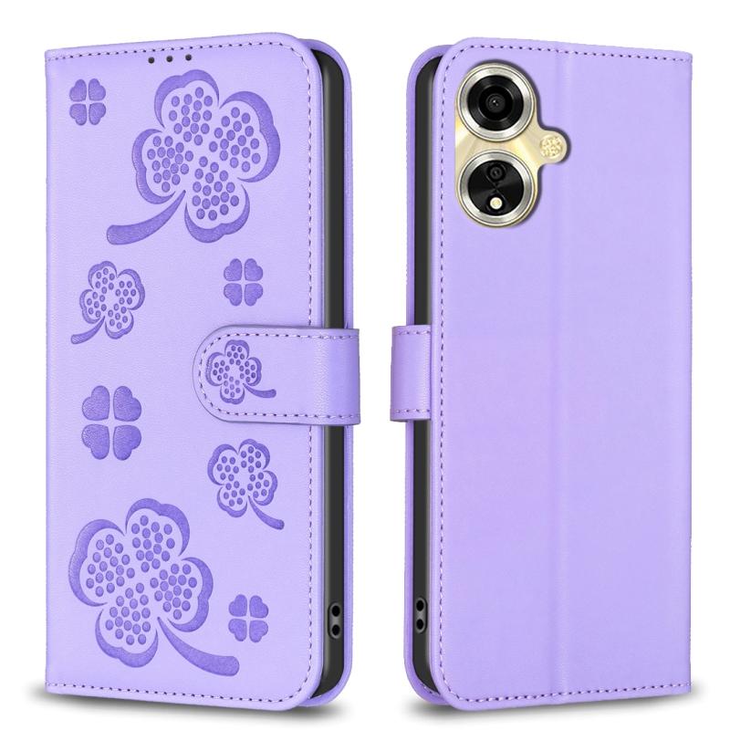 For OPPO A59 5G Four-leaf Embossed Leather Phone Case(Purple)
