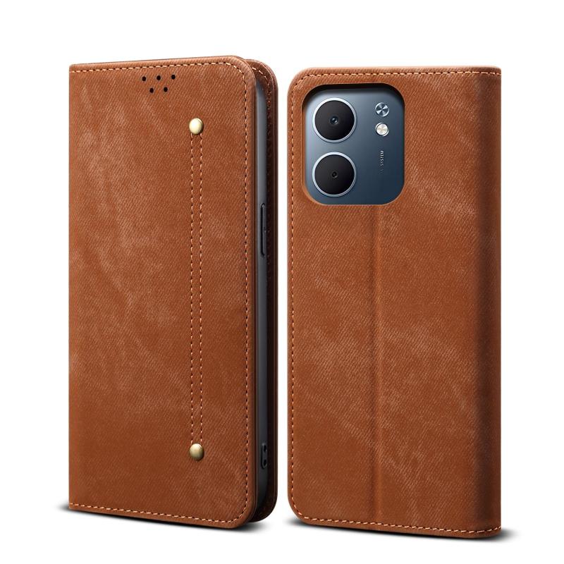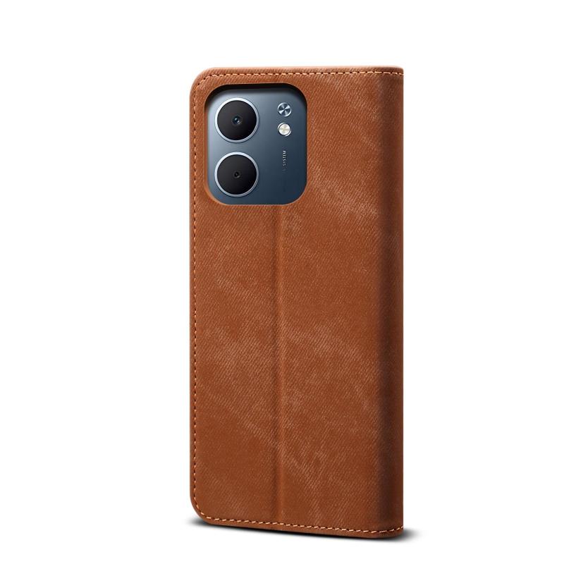 For OPPO A5x 4G / 5G Denim Texture Casual Style Horizontal Flip Leather Case(Brown)