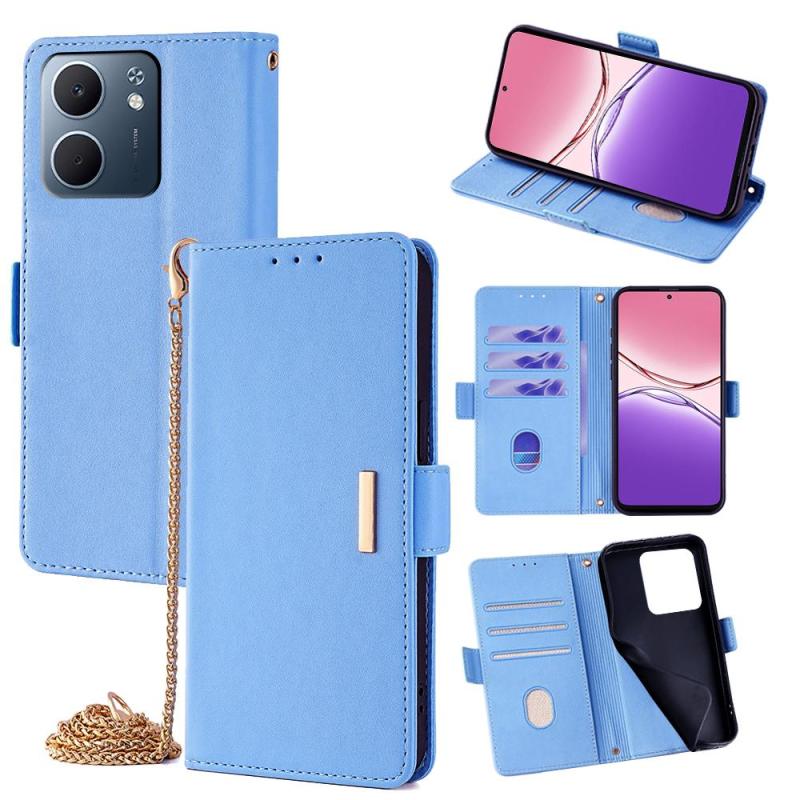 For OPPO A5x 5G Global Crossbody Chain Leather Phone Case(Blue)