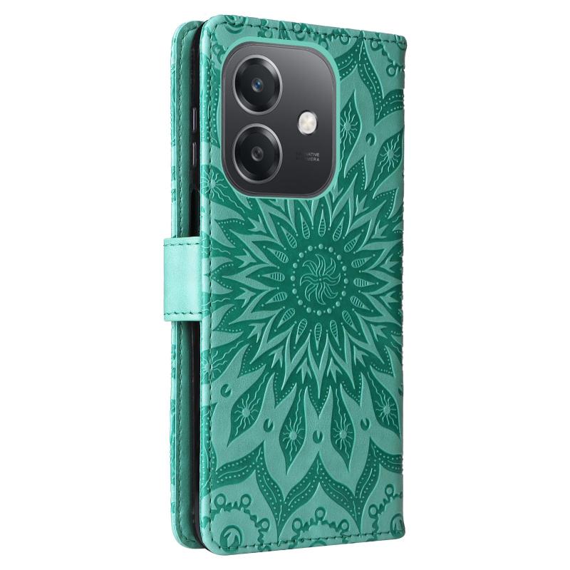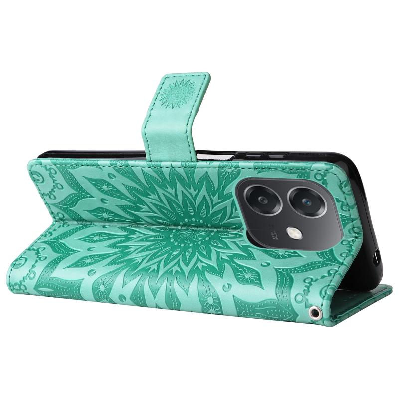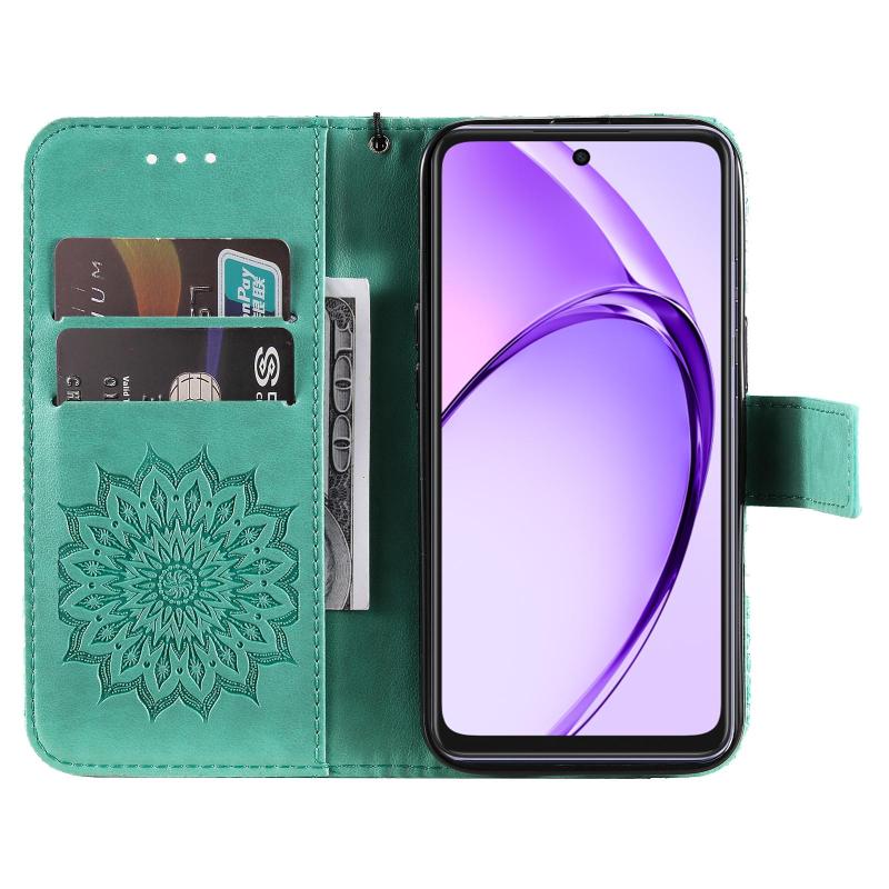 For OPPO A5x 5G Global Embossed Sunflower Pattern Flip Leather Phone Case(Green)