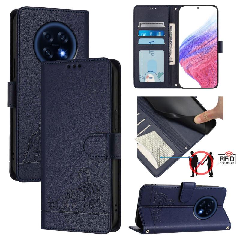 For OPPO A6 GT 5G Cat Rat Embossed Pattern RFID Leather Phone Case with Lanyard(Blue)