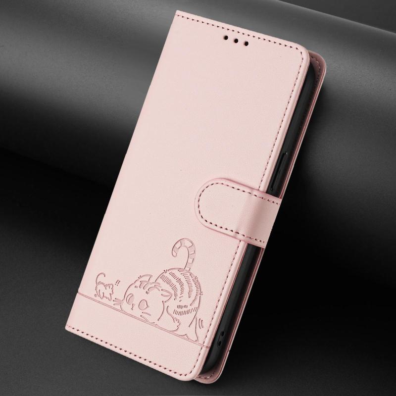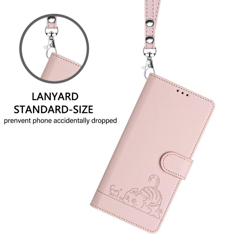 For OPPO A6 GT 5G Cat Rat Embossed Pattern RFID Leather Phone Case with Lanyard(Pink)