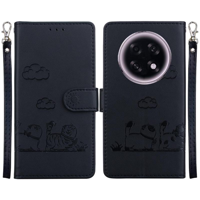 For OPPO A6 GT 5G Cute Cats RFID Leather Phone Case(Black)