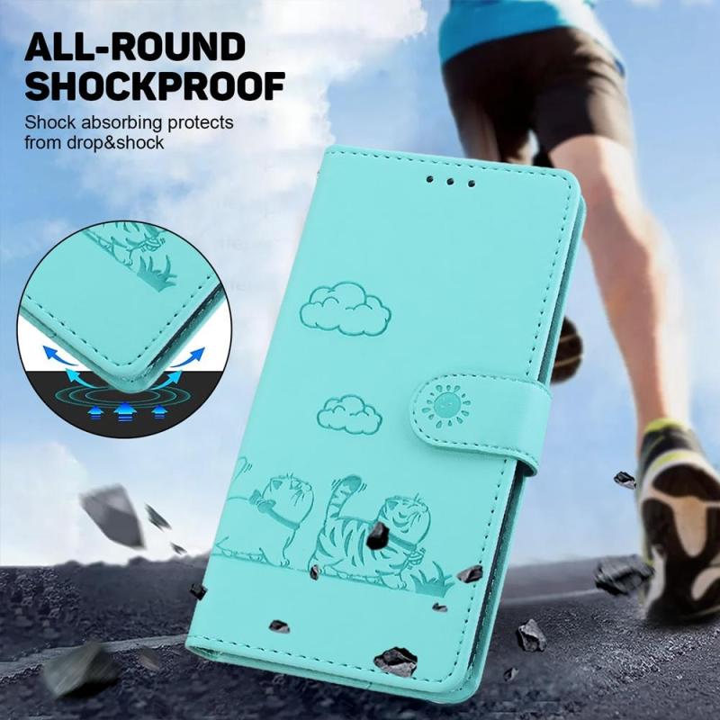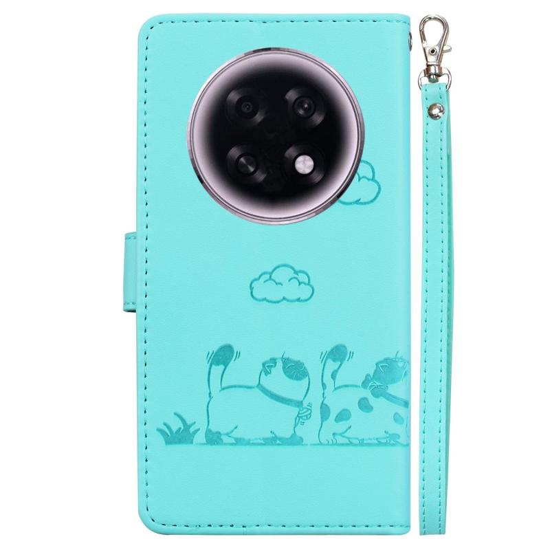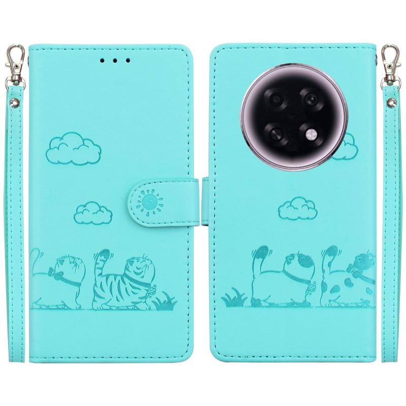 For OPPO A6 GT 5G Cute Cats RFID Leather Phone Case(Green)