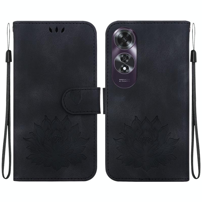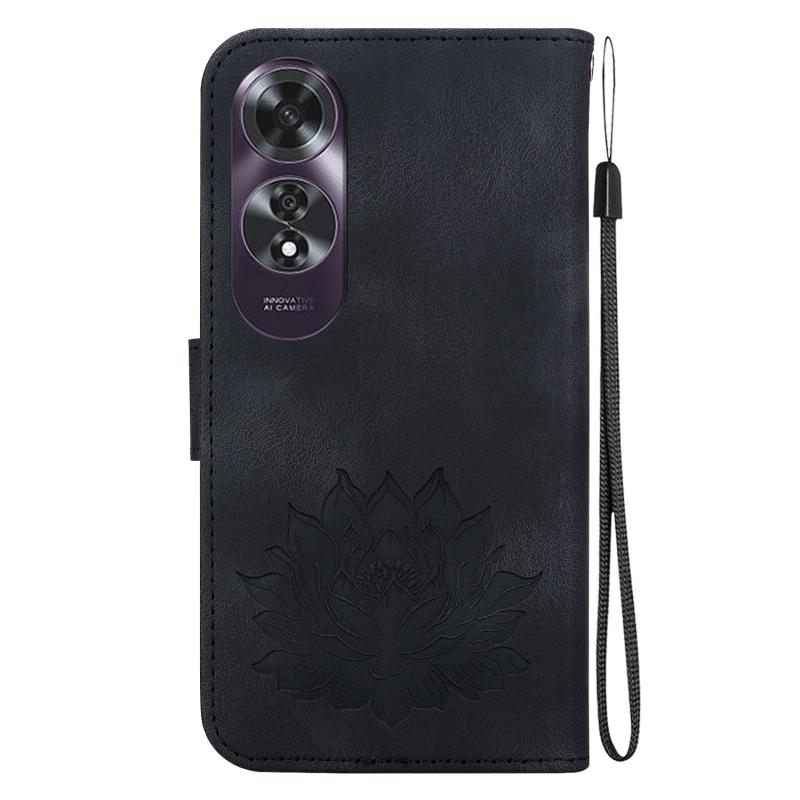 For OPPO A60 4G Lotus Embossed Leather Phone Case(Black)
