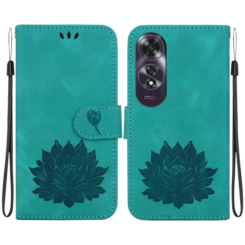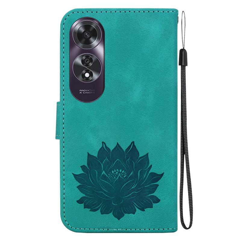 For OPPO A60 4G Lotus Embossed Leather Phone Case(Green)