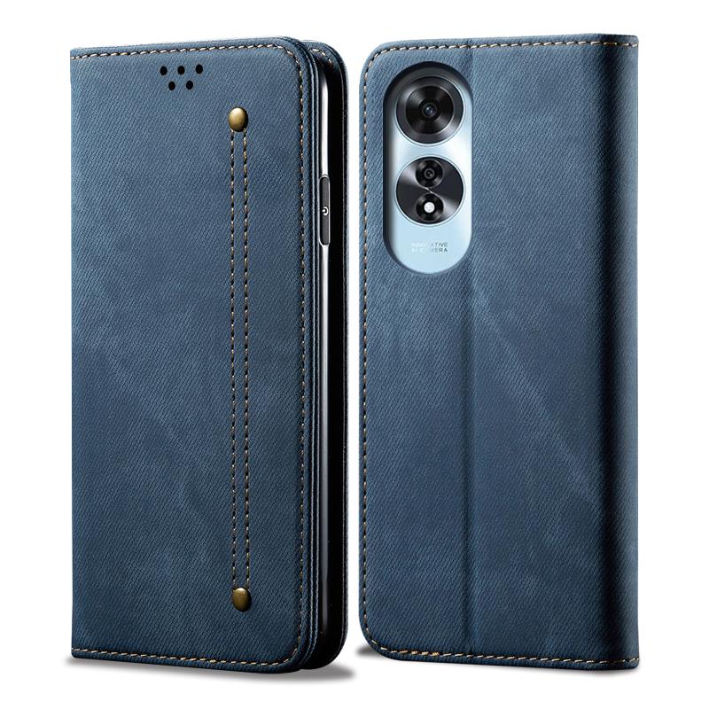 For OPPO A60 Denim Texture Casual Style Horizontal Flip Leather Case(Blue)