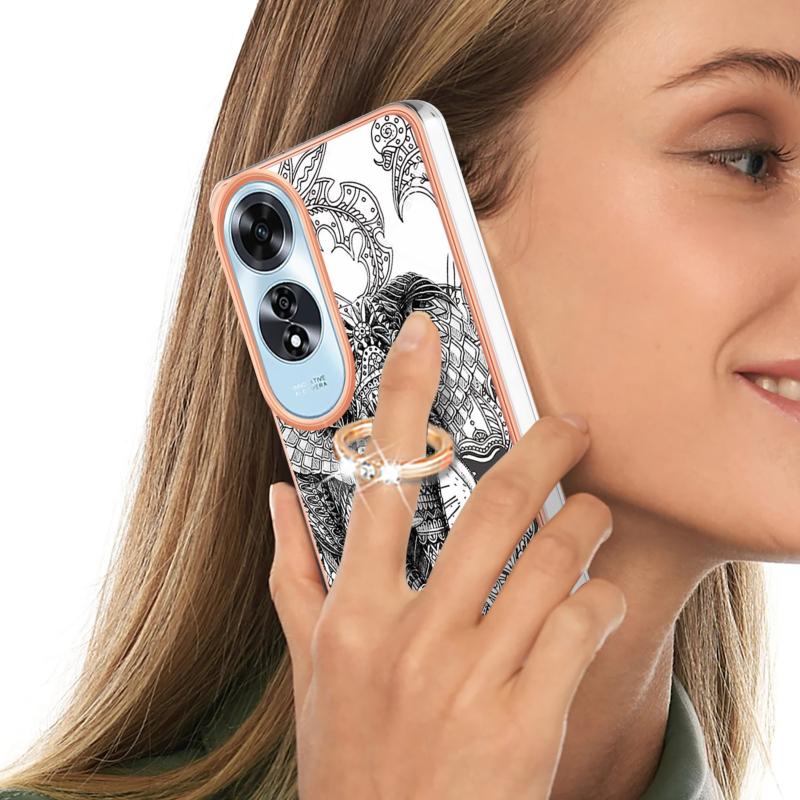 For OPPO A60 Electroplating Dual-side IMD Phone Case with Ring Holder(Totem Elephant)