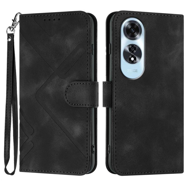 For OPPO A60 Line Pattern Skin Feel Leather Phone Case(Black)