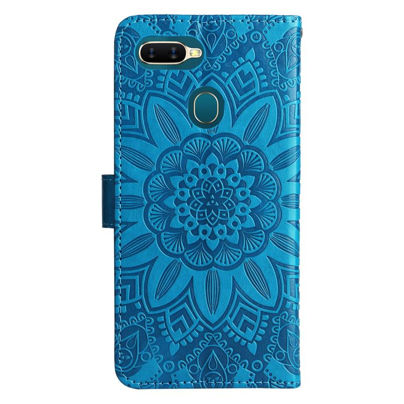 For OPPO A7 / A5s Embossed Sunflower Leather Phone Case(Blue)