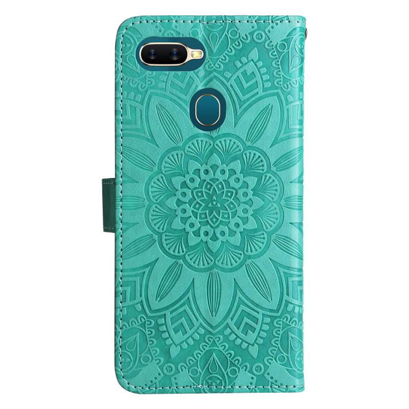 For OPPO A7 / A5s Embossed Sunflower Leather Phone Case(Green)