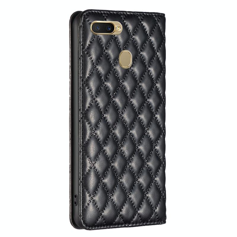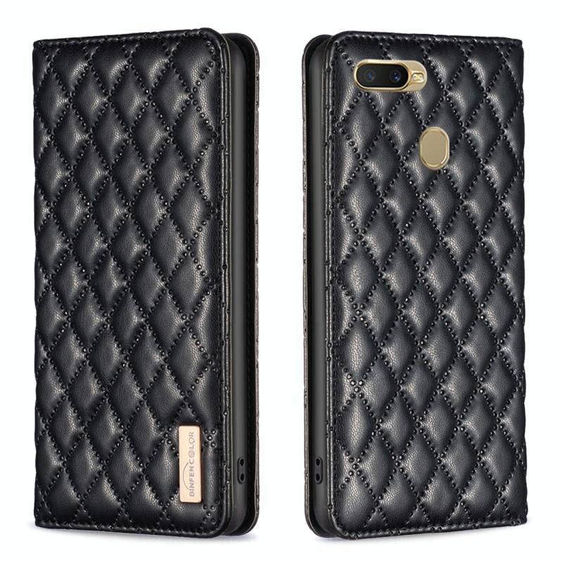 For OPPO A7 Diamond Lattice Magnetic Leather Flip Phone Case(Black)